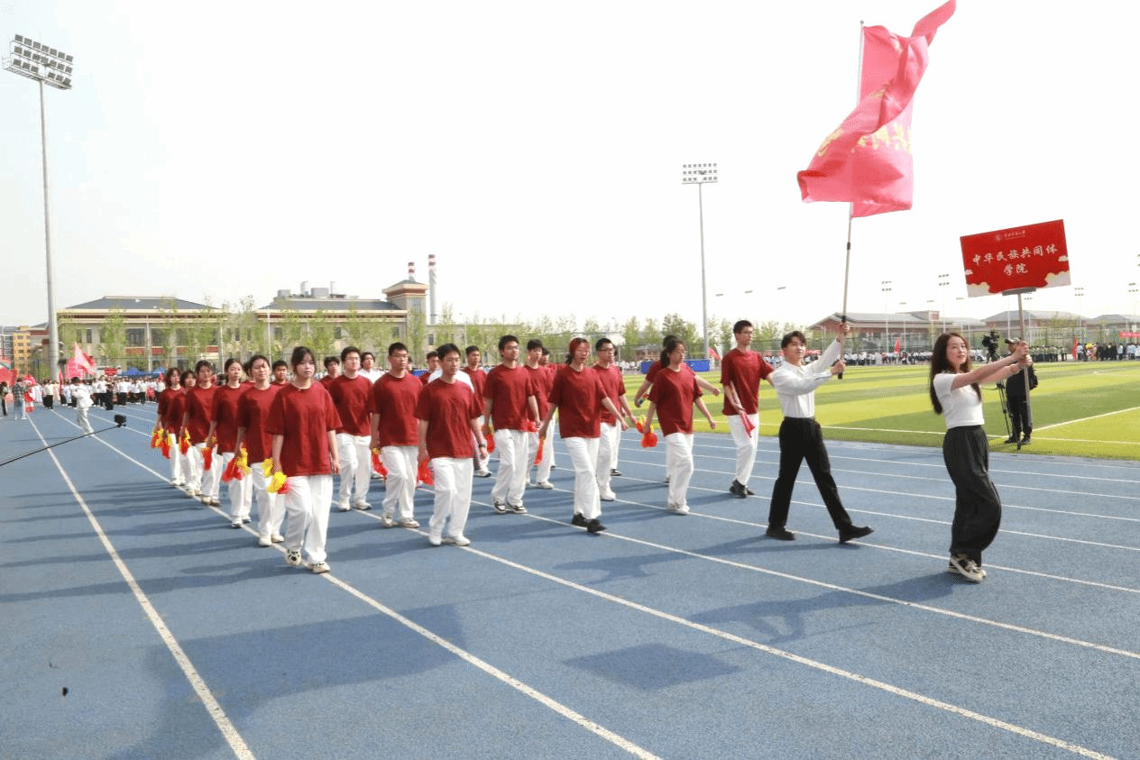 本屆運動會主題為“青春飛揚 融聚民大 智創未來”。開幕式前,數百名學子在《我的祖國》音樂中演繹二十四式太極拳,動作整齊劃一、剛柔并濟。開幕式上,國旗隊、校旗隊、紅旗隊、裁判員方隊、各學院運動員代表方隊、教職工代表方隊等依次入場。他們精神抖擻,邁著矯健的步伐,伴著嘹亮的口號,以昂揚奮進的姿態列隊經過主席臺,展現出蓬勃向上的精神風貌。