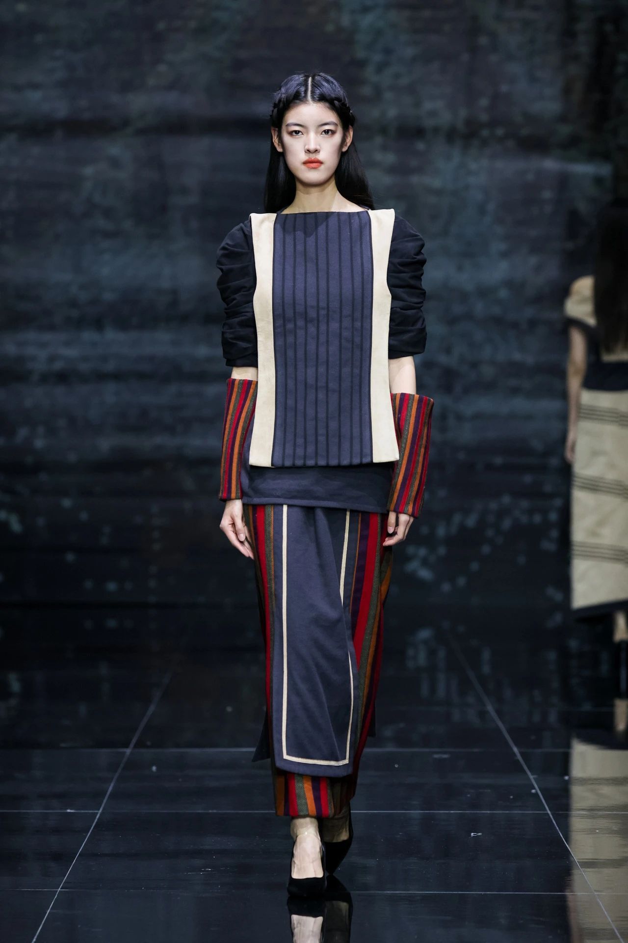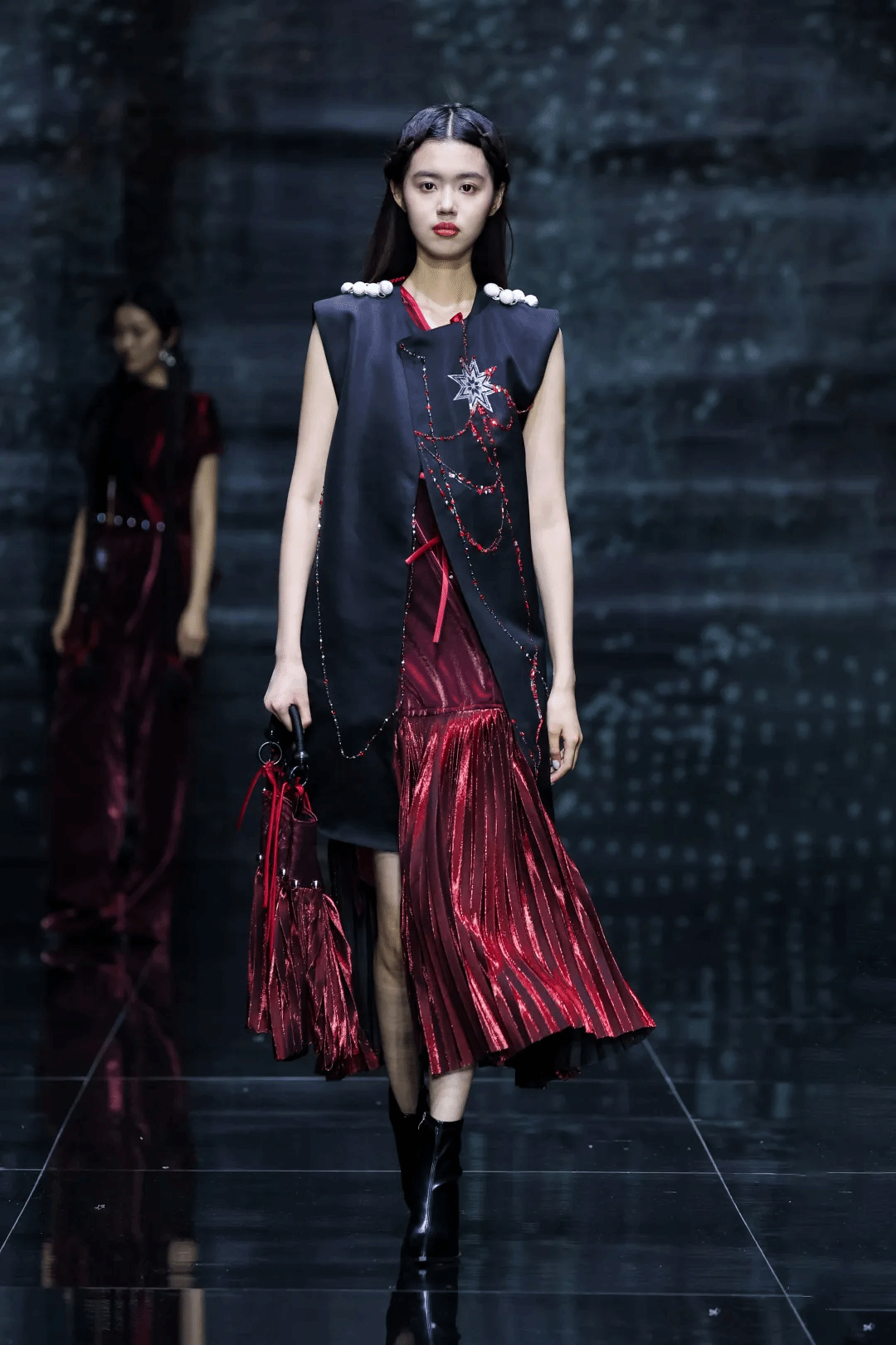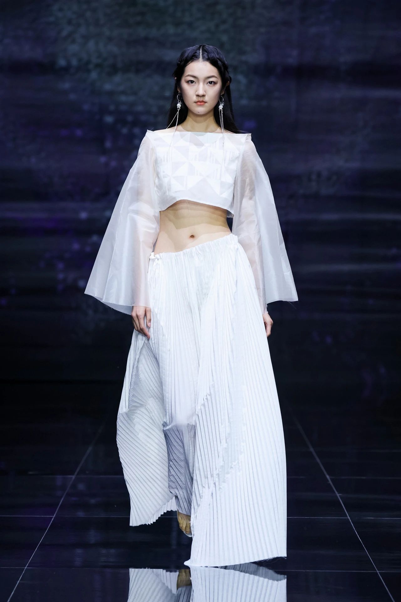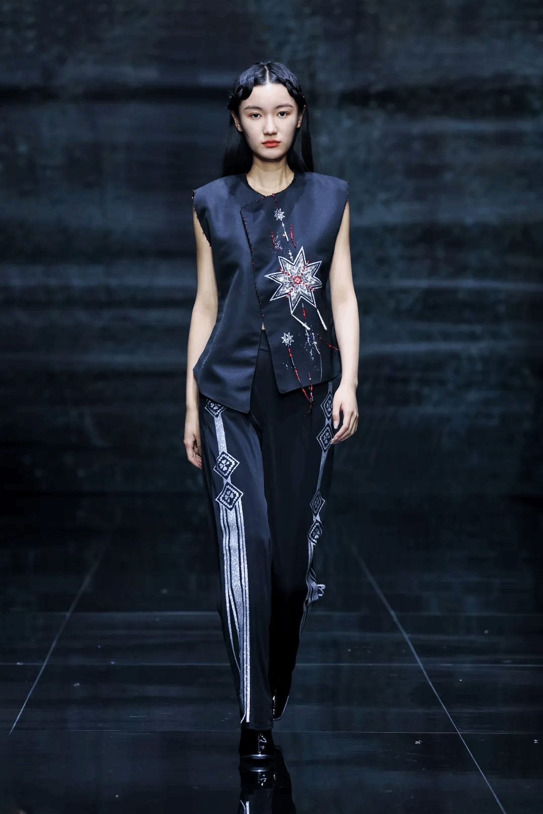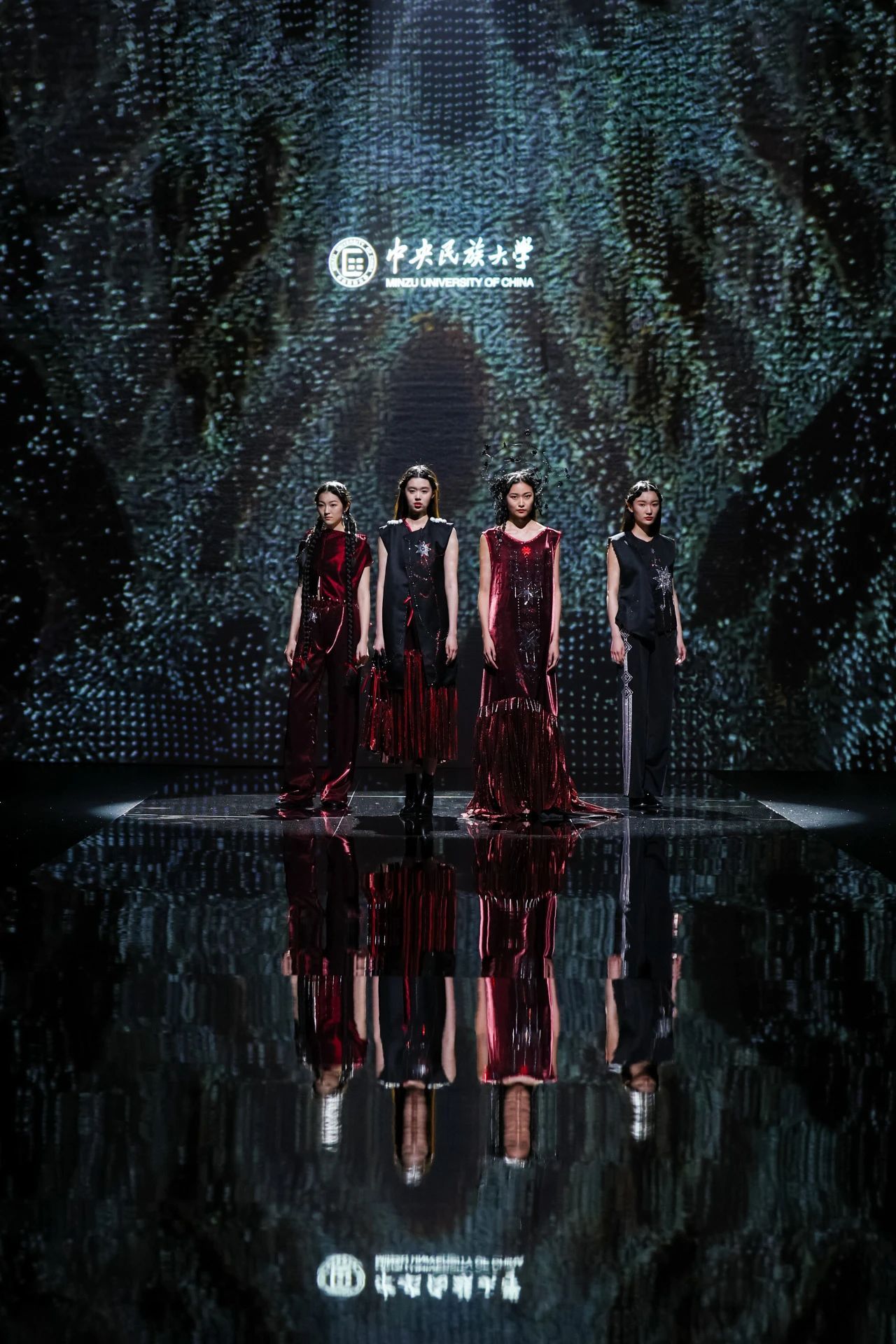 本次發布會以“乙巳星辰”為主題,在美術學院教師李潔、蔣彥嬰的指導下,21名學生設計師的78套服裝設計作品參加發布。作品將中華優秀傳統文化元素賦予浪漫新意并融入現代時尚生活,如繁星閃閃,璀璨輝映,多元交融,破界新生。
