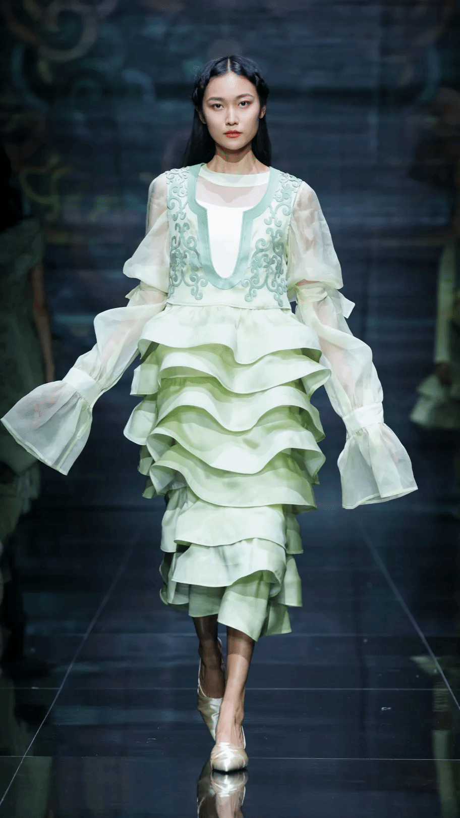 在近十個月的設計過程中,學生們從多維度感受民族服飾的魅力,從自然世界中探索萬物之靈,尋找古老的時尚密碼,每件作品都凝聚了他們對傳統文化的深度思考。作品以科技方式繪民族服飾紋樣之美、以非遺手工技藝展工匠之美、以巧妙的設計語言詮釋文化之美。作品不僅各有風格,也流露出年輕人思想獨立和文化自信的鮮明個性,為民族時尚創新轉化注入新活力。