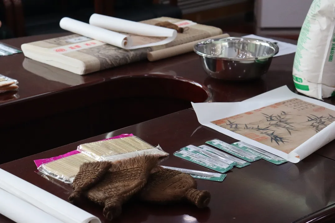 為了讓這項非遺技藝“可觸可感”,活動現場特設體驗區,準備了修復工具和破損的仿古字畫。師生們在實踐中更深刻地體會到,每一道看似簡單的工序,都是千年技藝的沉淀,而手中這一方宣紙承載的,不僅是修復的巧思,更是守護文明記憶的責任與匠心。