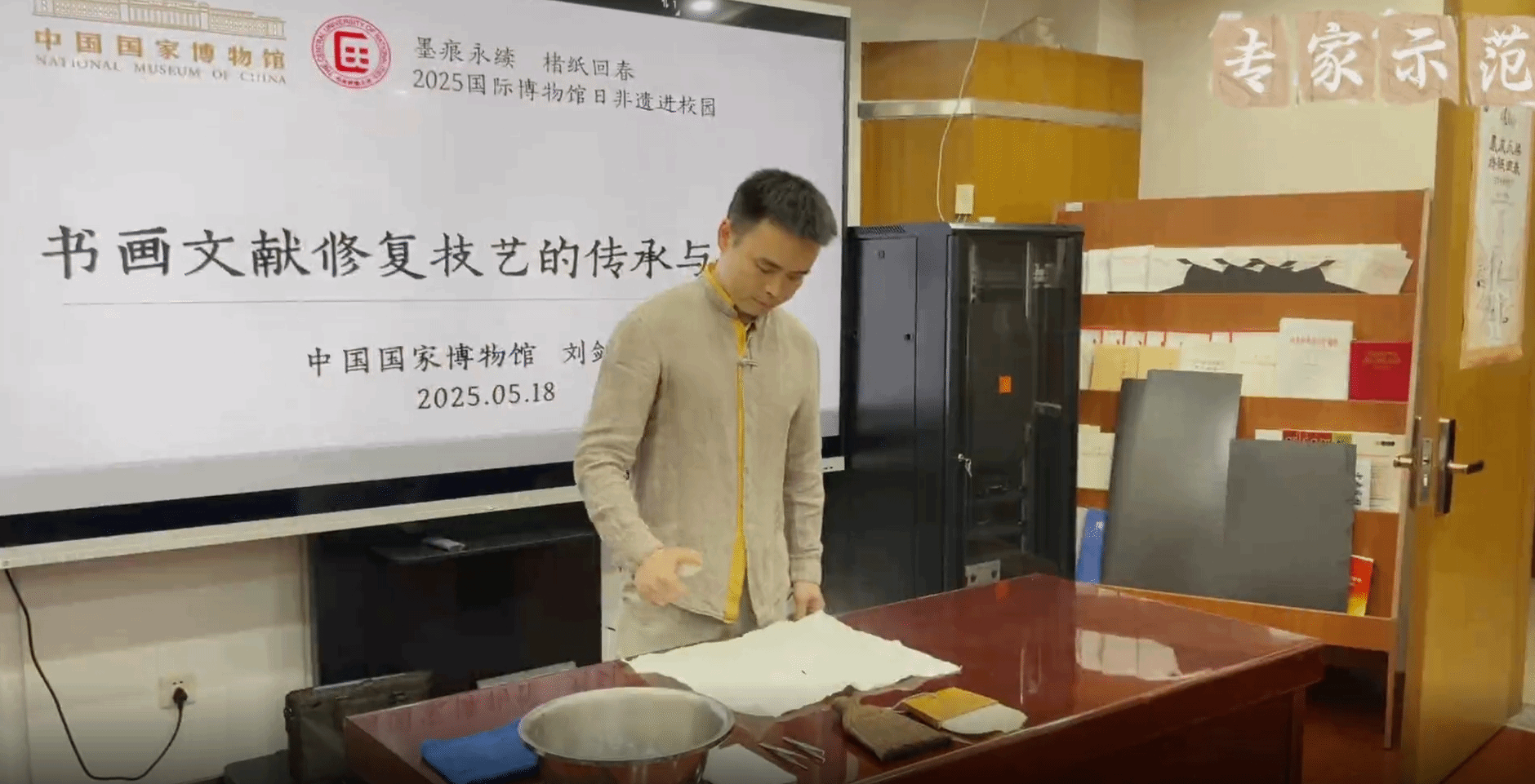 新聞網訊 近日,在“國際博物館日”之際,民族博物館舉辦“非遺進校園”系列活動之“墨痕永續 楮紙回春”古字畫修復專場活動,將非遺技藝的千年智慧帶入校園,讓師生沉浸式感受“化腐朽為神奇”的東方美學匠心。