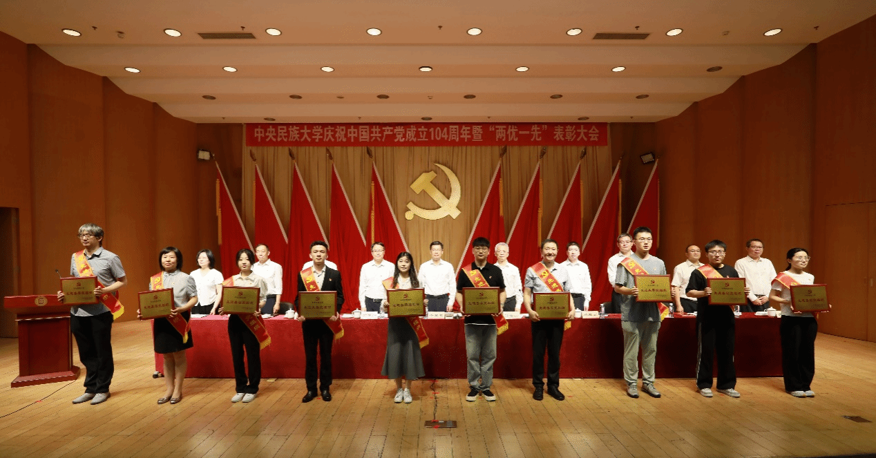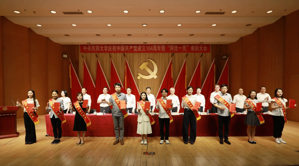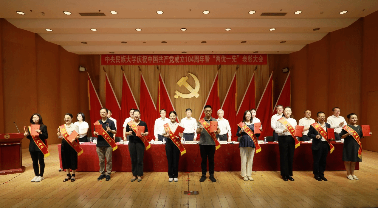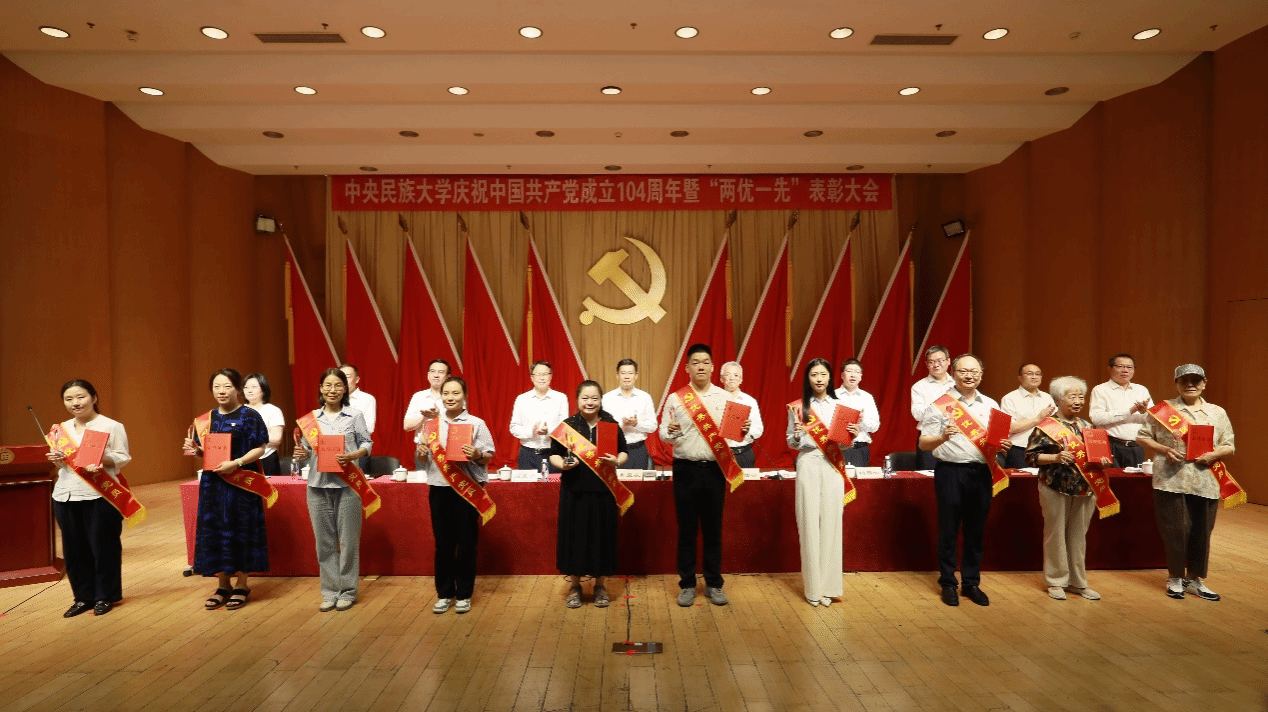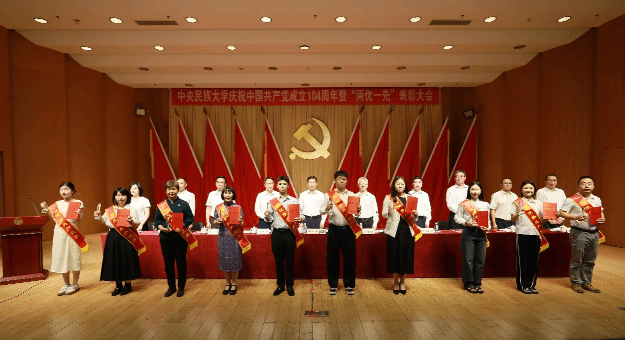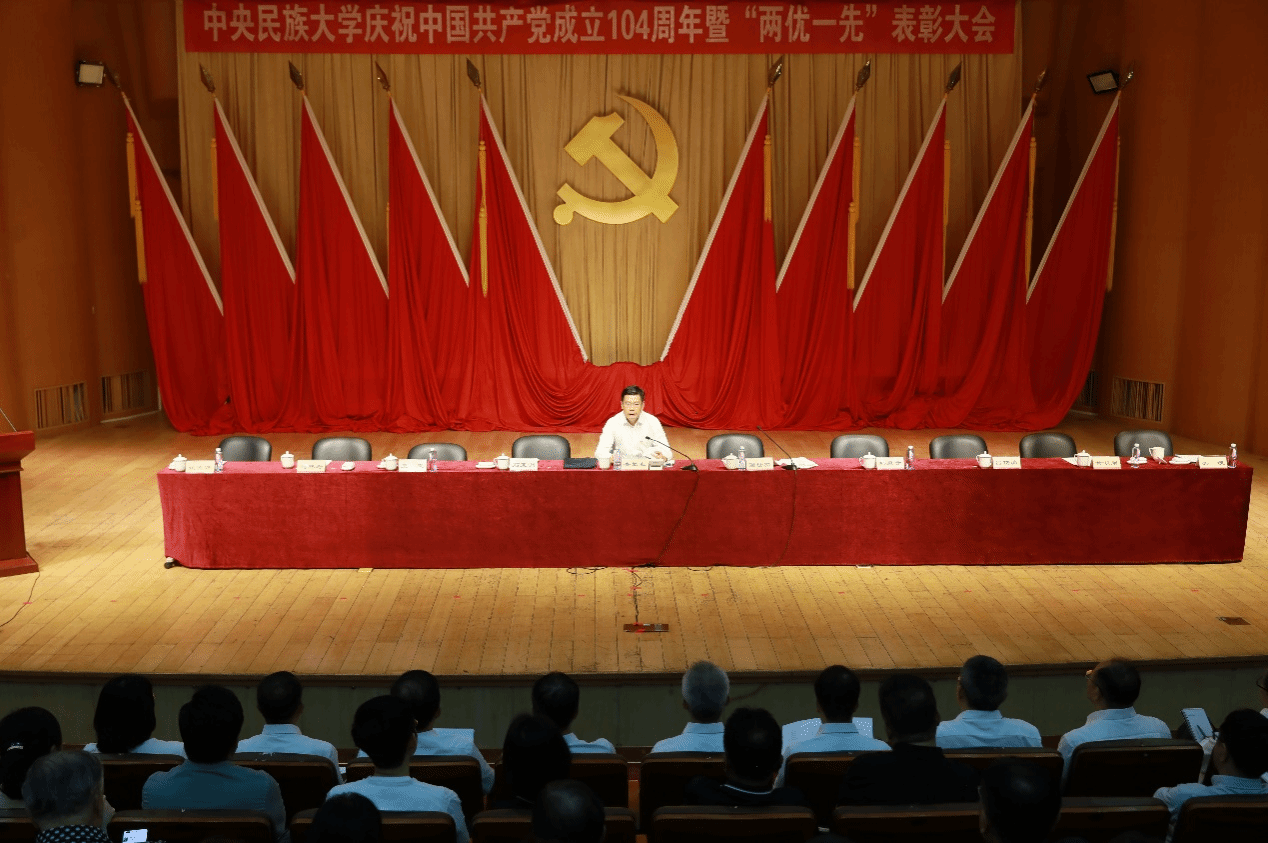 新聞網訊 6月27日,中央民族大學在海淀校區中慧樓音樂廳召開“兩優一先”表彰大會暨黨委書記講黨課。在慶祝中國共產黨成立104周年之際,學校向獲得“光榮在黨50年”紀念章的黨員同志頒發紀念章,并表彰了優秀共產黨員、優秀黨務工作者和先進基層黨組織。