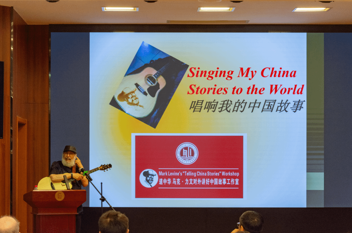 馬克?力文教授隨后致辭,并以 “唱響我的中國故事” 為題開講首場講座。在悠揚弦音中,他現(xiàn)場演繹了10首原創(chuàng)歌曲,將近20年在華工作生活經(jīng)歷以及北京奧運會、中國共產(chǎn)黨成立 100 周年等重大歷史事件融入旋律,用歌聲勾勒時代印記,講述中國故事,現(xiàn)場掌聲不斷,反響熱烈。