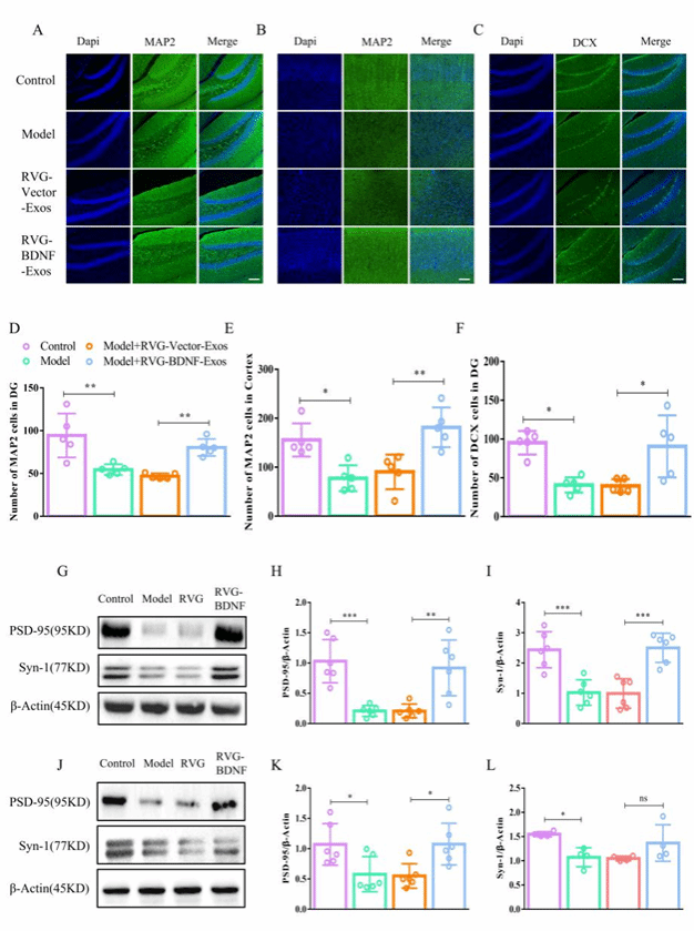 圖6 RVG-BDNF-Exos能增強神經發生和調節突觸可塑性