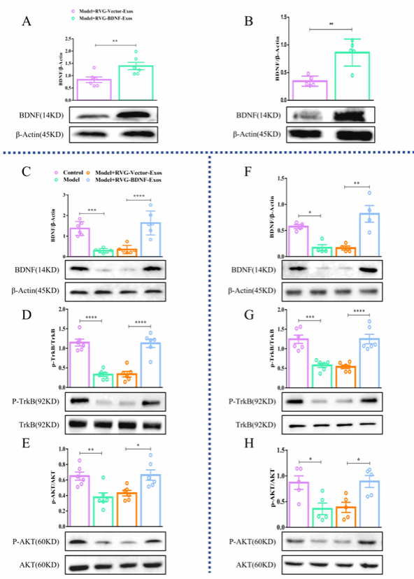 圖2 RVG-BDNF-Exos促進海馬和前額葉皮層中的BDNF/TrkB信號轉導
