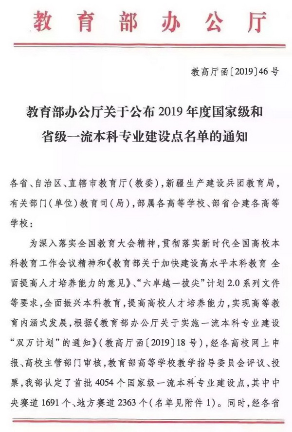 2019年,教育部啟動了一流本科專業建設“雙萬計劃”,三年內,建設10000個左右國家級一流本科專業點和10000個左右省級一流本科專業點。本次評選是教育部實施的首批評選,共認定了4054個國家級一流本科專業建設點,6210個省級一流本科專業建設點。