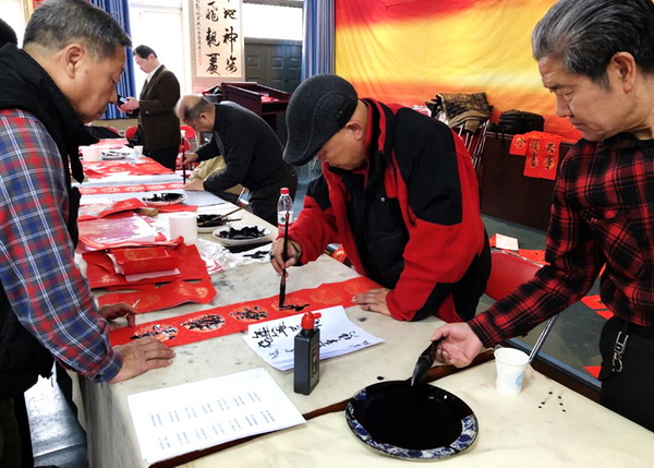 熱鬧非凡的活動現場,離退休教職工書畫協會的老師們揮毫潑墨,一幅幅散發著清新墨香的“春聯”和“福”字當下完成送到離退休老同志們手中,為老同志們送上新春第一份祝福。大家拿著一幅幅吉祥喜慶、墨寶飄香的春聯,臉上蕩漾著幸福的喜悅,整個活動現場被紅色的春聯和熱鬧的人群映襯得年味十足。