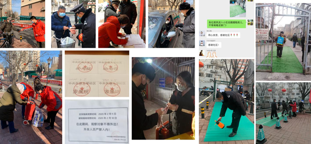 民大社區工作者、黨員們、物業人員、保安、志愿者堅守防控服務崗位